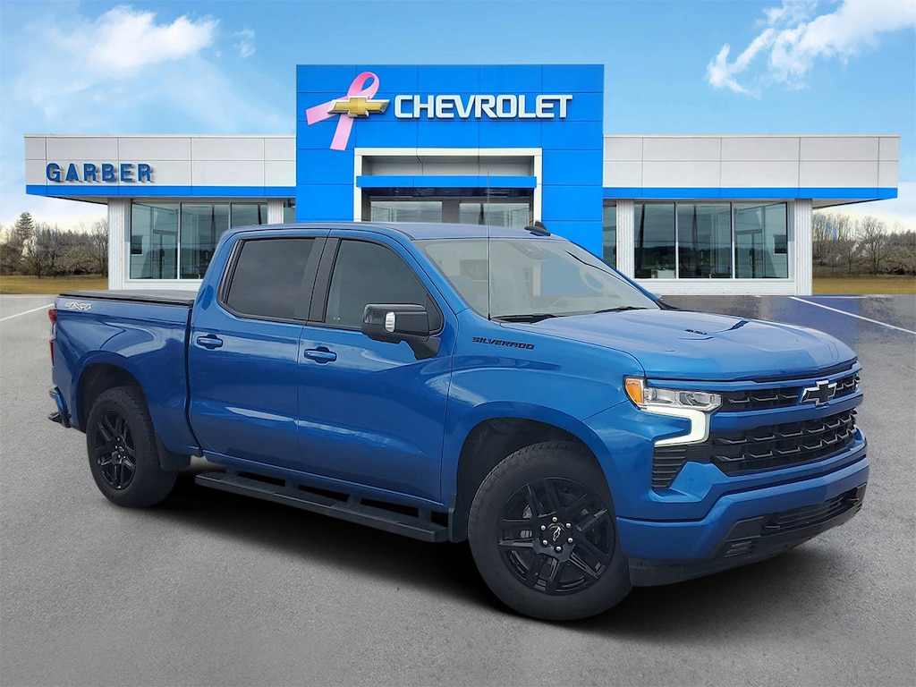 Glacier Blue Metallic 2023 Chevrolet Silverado 1500 RST 4WD **Heated steering Wheel, **Heated seats, **Apple car play, Android auto, **Bose Radio, **Trailer Package, **Back up camera, **Remote start, **Spray in bedliner, **Safety Package, Bluetooth, Local Trade!, CENTER CONSOLE, 4D Crew Cab, EcoTec3 6.2L V8, 10-Speed Automatic, Convenience Package, Convenience Package II, Dark Essentials Package (LPO), High Capacity Suspension Package, Preferred Equipment Group 1SP, Protection Package, Safety Package, Standard Suspension Package, Trailering Package. Clean CARFAX.