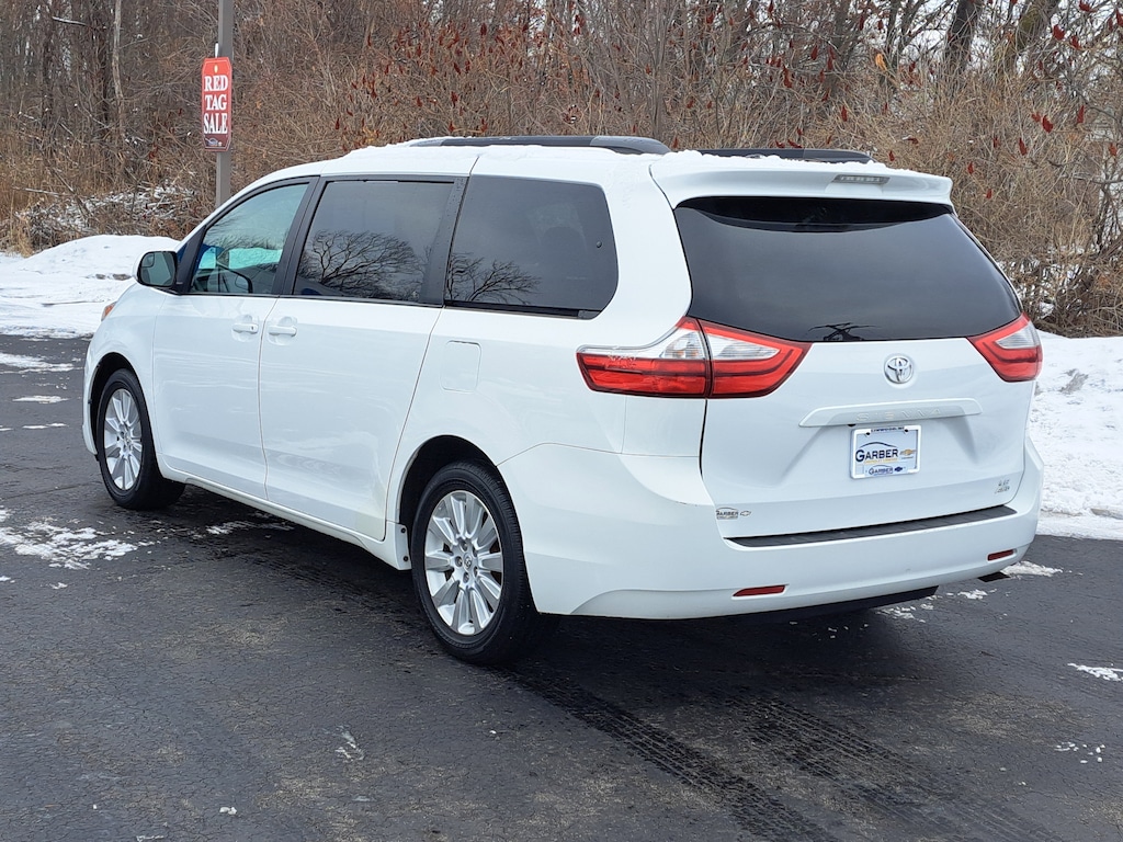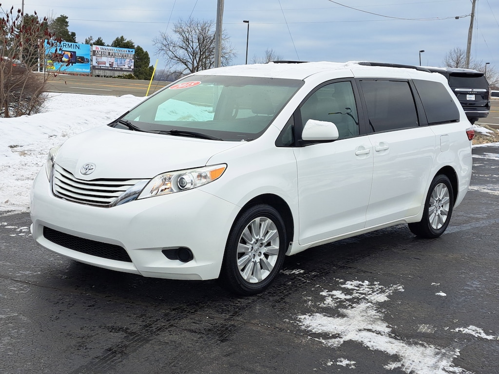 Recent Arrival!18 x 7 10-Spoke Machine Finish Alloy Wheels, 3rd row seats: split-bench, 4-Wheel Disc Brakes, 6 Speakers, ABS brakes, Air Conditioning, Alloy wheels, AM/FM radio: SiriusXM, Auto-dimming Rear-View mirror, Automatic temperature control, Axle Ratio: 4.15, Brake assist, Bumpers: body-color, CD player, Compass, Delay-off headlights, Door auto-latch, Driver door bin, Driver vanity mirror, Driver's Seat Mounted Armrest, Dual front impact airbags, Dual front side impact airbags, Electronic Stability Control, Exterior Parking Camera Rear, Fabric Seat Material, Front anti-roll bar, Front Bucket Seats, Front dual zone A/C, Front reading lights, Front wheel independent suspension, Fully automatic headlights, Garage door transmitter: HomeLink, Heated door mirrors, Illuminated entry, Knee airbag, Low tire pressure warning, Occupant sensing airbag, Outside temperature display, Overhead airbag, Overhead console, Panic alarm, Passenger door bin, Passenger seat mounted armrest, Passenger vanity mirror, Power door mirrors, Power driver seat, Power steering, Power windows, Radio data system, Radio: AM/FM/HD/CD w/6 Speakers, Rear air conditioning, Rear anti-roll bar, Rear reading lights, Rear window defroster, Rear window wiper, Reclining 3rd row seat, Remote keyless entry, Roof rack: rails only, Speed control, Speed-sensing steering, Split folding rear seat, Spoiler, Steering wheel mounted audio controls, Tachometer, Telescoping steering wheel, Tilt steering wheel, Traction control, Trip computer, Variably intermittent wipers. Clean CARFAX.White 2015 Toyota Sienna LE 7 Passenger AWD 6-Speed Automatic Electronic with Overdrive 3.5L V6 SMPI DOHCAwards:* 2015 IIHS Top Safety Pick+ * 2015 KBB.com Best Resale Value Awards * 2015 KBB.com 15 Best Family Cars * 2015 KBB.com Best Buy Awards FinalistAlthough we attempt to keep our inventory current, we cannot guarantee that this vehicle and all others will still be available for sale. Be sure to call or email us for more information & availability first! All options, warranties and prices are subject to error and must be verified with the dealer, certification may be additional cost.